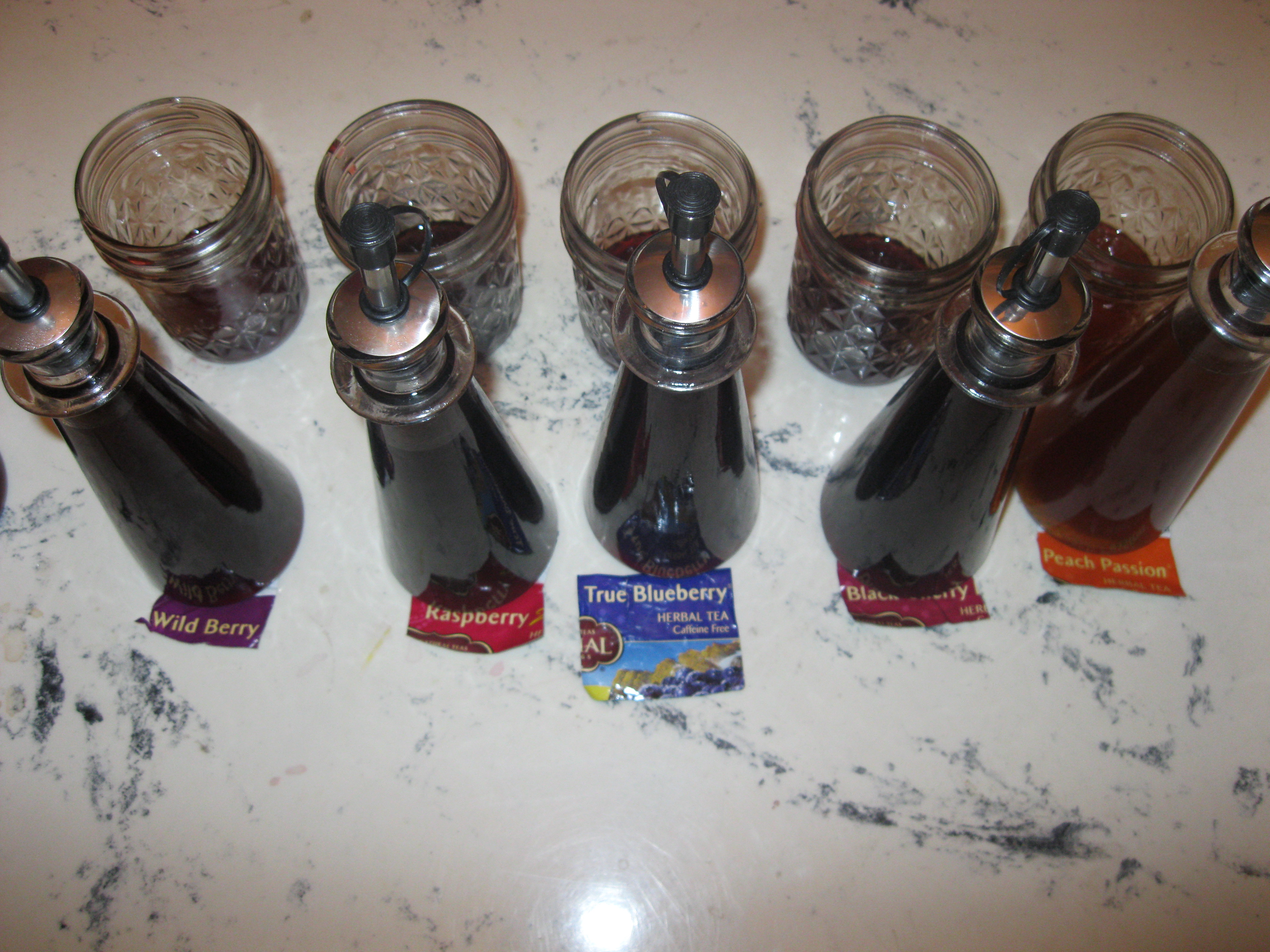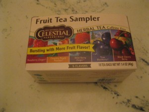 To create the flavor base, I considered many potential ingredients.  The easiest, most stable, and least expensive were flavored teas.  I chose the Celestial Seasoning flavors because they are caffeine free and include no actual tea.  I picked a sampler pack to get a variety of flavors.