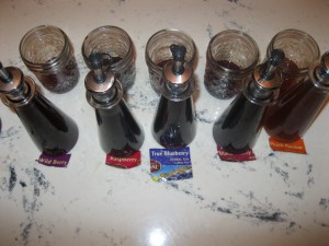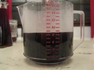 This yielded just less than 9 oz of syrup.  Using a large measuring cup, I poured them into some small cruets that I had picked up at World Market.